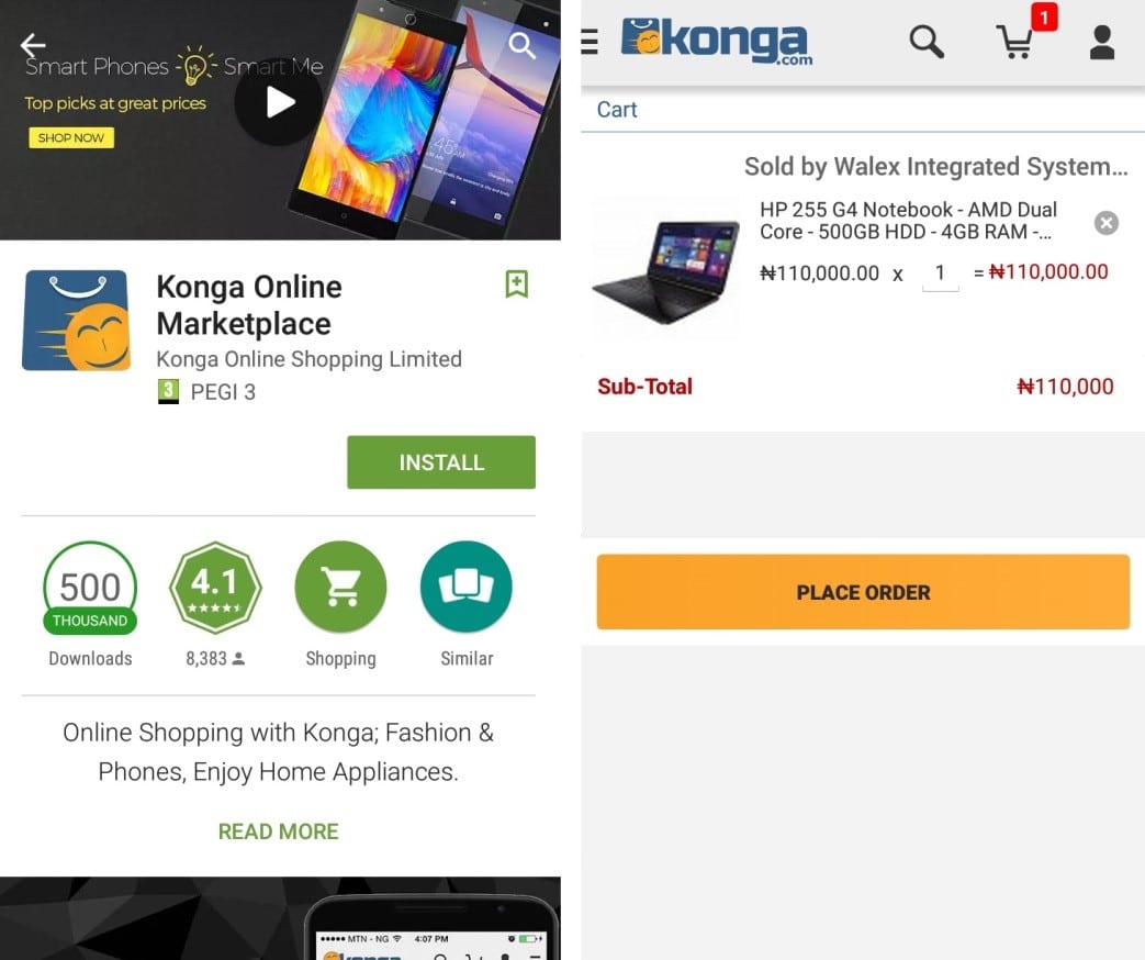 Online shopping mall Konga.com has a mobile app with an ideal shopping cart. It loads quickly and has a simple design. It’s easy to adjust quantities and remove products with a single click, or advance straight to the payment page. The cart also has a mobile-friendly ‘slide-to-refresh’ feature.