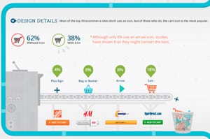 The add-to-cart button is probably the most important thing on a shopping site – so how do you get shoppers to drop products into their cart? Volusion took a look at the add-to-cart buttons of the top 50 ecommerce sites (i.e. Walmart, Zappos, eBay, Amazon) to see how they’ve designed their buttons to entice shoppers to do just that. So what color, wording and design work best?