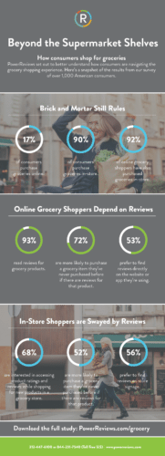 Clearly, the way consumers shop for groceries is evolving—and will continue to do so as more online grocery shopping options emerge. PowerReviews recently surveyed more than 1,000 American consumers to better understand how they’re navigating the grocery shopping process. Check out the infographic below for a snapshot of the study’s key findings. Then read on for six recommendations for grocery retailers to meet the needs of today’s consumers in order to compete—and win—in an increasingly competitive space.