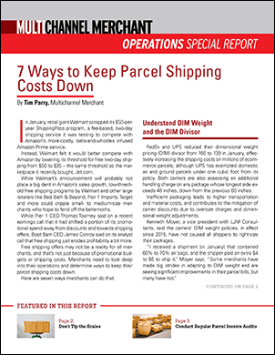 | Giant omnichannel players such as Walmart, Bed Bath & Beyond, Pier 1 Imports and Target have lowered their free-shipping thresholds to better compete with Amazon. While the big merchants are paying for this in part with a shift in promotional dollars, the move could cripple small- to medium-size merchants who hope to fend off the behemoths.Free shipping offers may not be a reality for all merchants, and that’s not just because of promotional budgets or shipping costs. Merchants need to look deep into their operations and determine ways to keep their parcel shipping costs down.