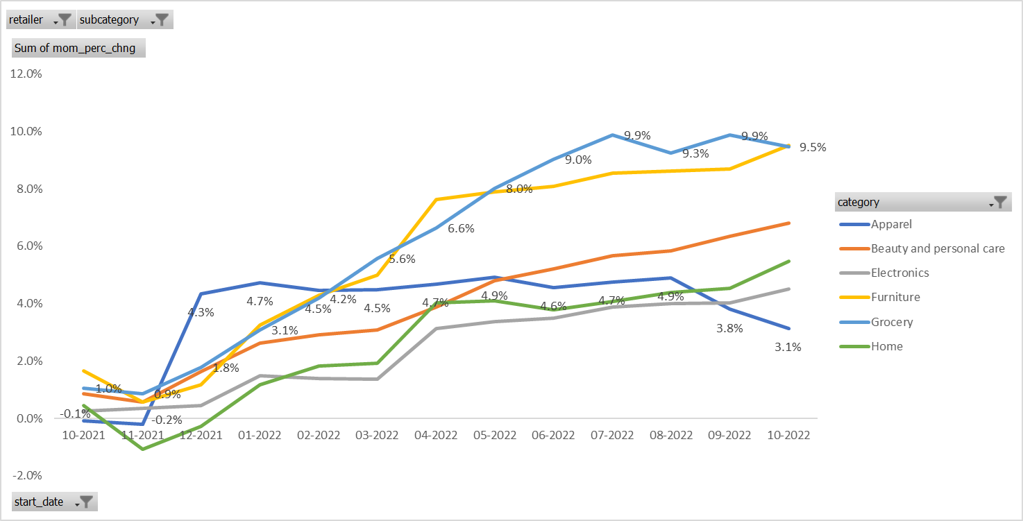 Retail category pricing trends, Oct. 2021 to Oct. 2022. Source: DataWeave