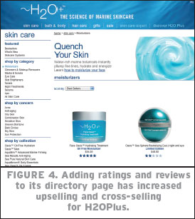 As shown in Figure 4, H2OPlus has successfully added ratings and reviews on its directory page, increasing cross-sell and upsell opportunities.