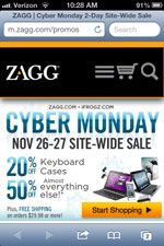 The email or Twitter or Facebook offer: ZAGG Cyber Monday 2 Day Event Email Offer