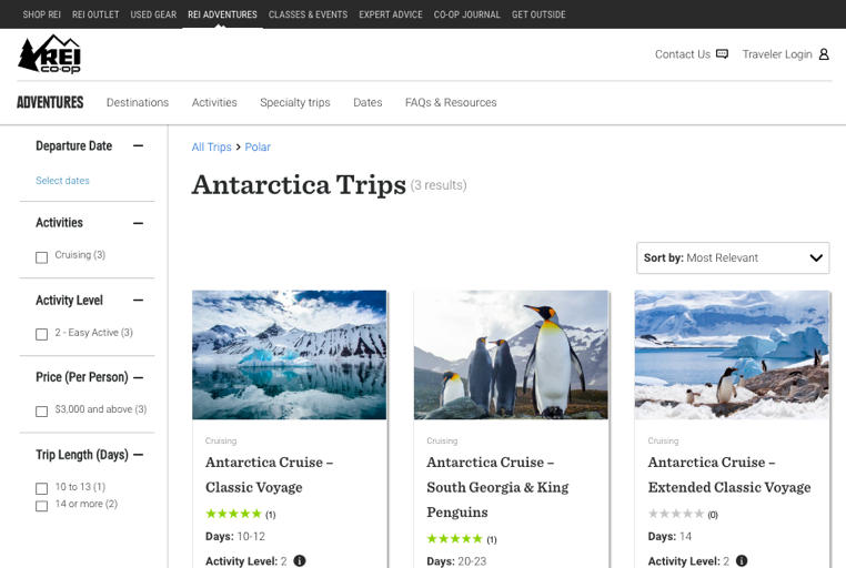 These tack-on platforms typically have their own content management, UI, and transactional systems. An example is REI Adventures, its destination travel unit. While integrated with the website’s global navigation, it lives in a subfolder which takes the customer out of the gear catalog. Members must create new usernames and passwords for this experience, and must book travel by telephone.